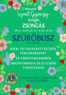 Szűrőbusz Sopronban a Hunyadi Általános Iskolában a Szent György-napi Zsongás keretében2026. április 21. 19:00 Riport a Soproni TV-ben a Dobray –Bánki est előtt